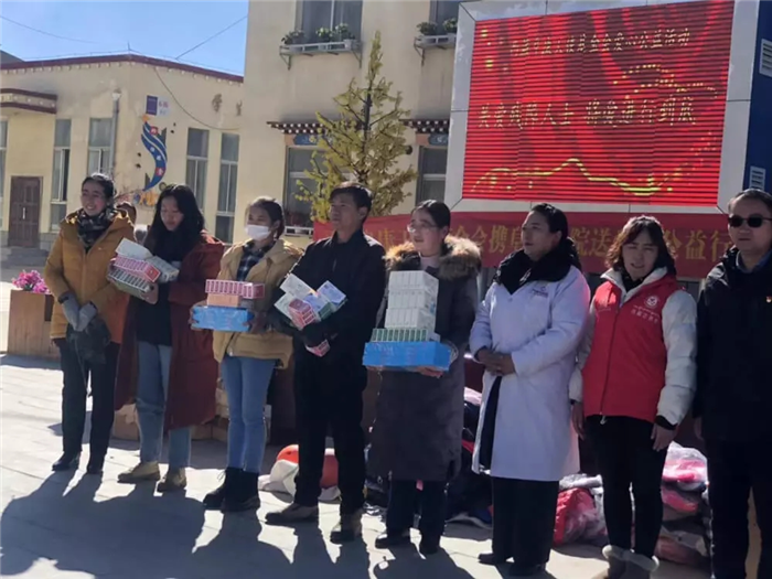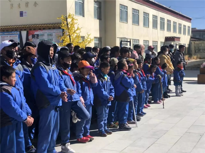 11月1日上午,西藏阜康天使基金會吉拉女士受西藏阜康醫(yī)療股份有限公司黨委書記、阜康天使基金會會長王斌先生,西藏阜康醫(yī)療股份有限公司總經(jīng)理、阜康天使基金會秘書長劉瀟瀟女士委托與西藏阜康醫(yī)院義診隊一起,攜價值一萬五千元的藥品和兩萬元的物資來到那曲市特殊教育學校,為這里的孩子們帶來了文化體育學習用品及藥品等物資。在特校校長次仁拉姆的組織下,特校師生列隊歡迎我們的到來,還精心準備了錦旗和潔白的哈達。