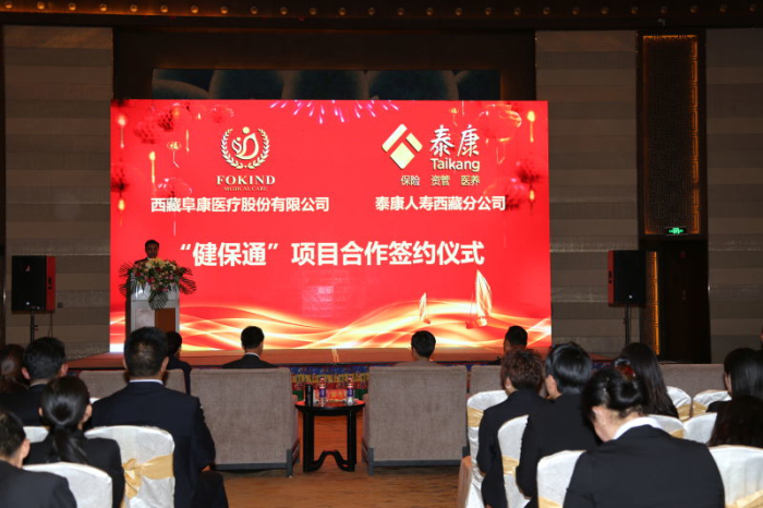 5月25日,西藏阜康醫(yī)療與泰康人壽西藏分公司"健保通”項目合作簽約儀式在香格里拉酒店會議廳隆重舉行,西藏保監(jiān)局秘書長彭飛蹄,西藏阜康醫(yī)療黨委書記、董事長王斌,泰康人壽西藏分公司總經(jīng)理向勉參加會議并發(fā)表講話。