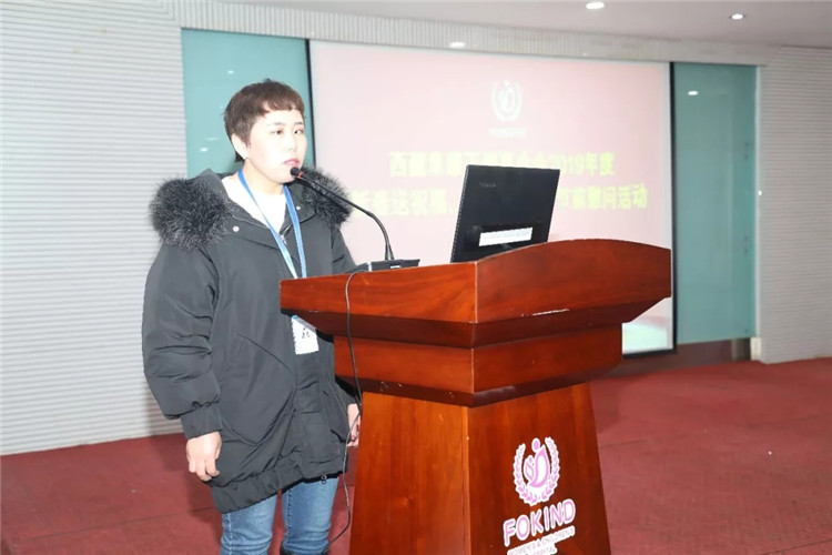 西藏阜康天使基金會秘書長吉拉帶來了阜康天使基金會創(chuàng)始人王斌、劉瀟瀟對困難員工的祝福和慰問,勉勵大家努力工作,與阜康共同進步,在走向幸福的路上一個都不能少,并祝大家過一個幸??鞓纺?由于此次受助人員都是藏族員工,吉拉秘書長用藏語鼓勵大家積極生活、努力工作,要用一顆感恩的心回報社會。阜康天使基金會將在區(qū)黨委、政府的領(lǐng)導下,緊跟時代步伐,發(fā)展創(chuàng)新,爭取在助醫(yī)、助學、助困上幫助到更多的人。