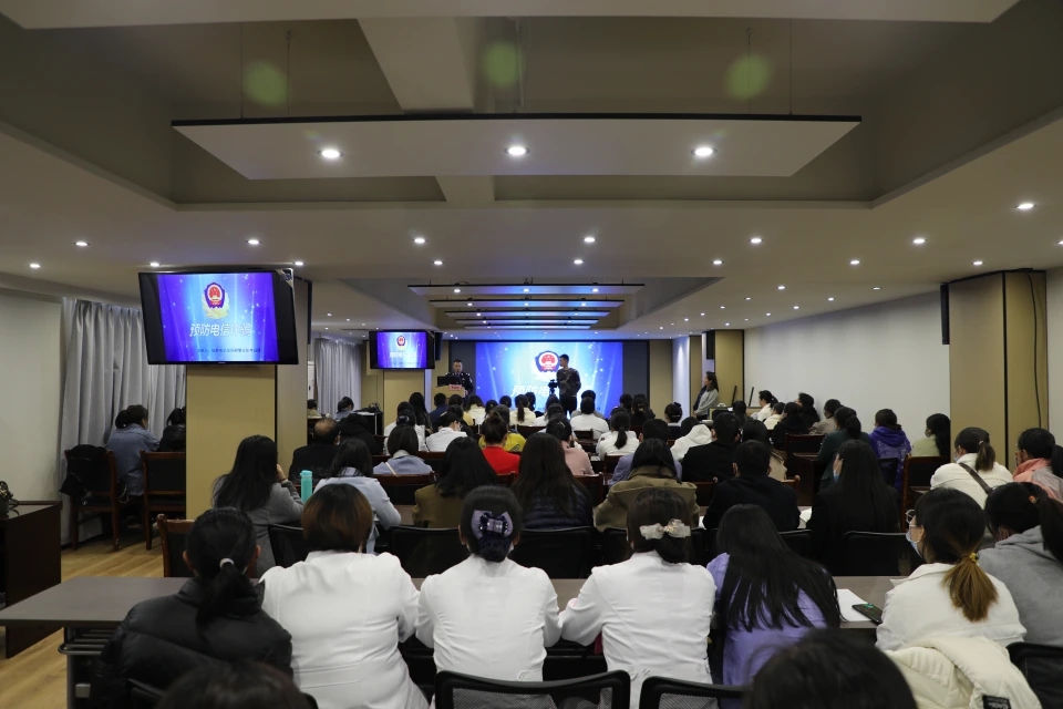 3月3日至4日,為了提高全院職工反詐騙能力,由阜康醫(yī)療黨委辦公室組織,由拉薩市公安局反詐騙中心主講的"預(yù)防電信詐騙”專題講座在西藏阜康醫(yī)院婦產(chǎn)兒童院區(qū)(院區(qū)三)行政辦公區(qū)會議室舉行,拉薩市公安局反詐騙中心李遠欣警官主講授課,我院全體醫(yī)生、技師分兩批次參加了本次培訓(xùn)(全體行政后勤、護理人員已在之前參加了培訓(xùn)),培訓(xùn)會由黨委辦公室喬倩主持。