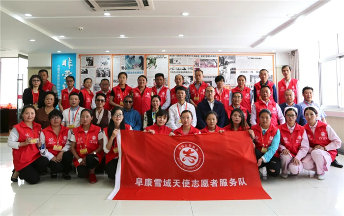 西藏阜康雪域天使志愿者服務隊成立于2017年,以"奉獻、友愛、互助、進步”為宗旨,在患者就診秩序維護、敬老助殘、醫(yī)療解答、保護環(huán)境、社區(qū)義診、健康講座、送醫(yī)送藥下鄉(xiāng)等領域開展了多種形式的志愿活動。